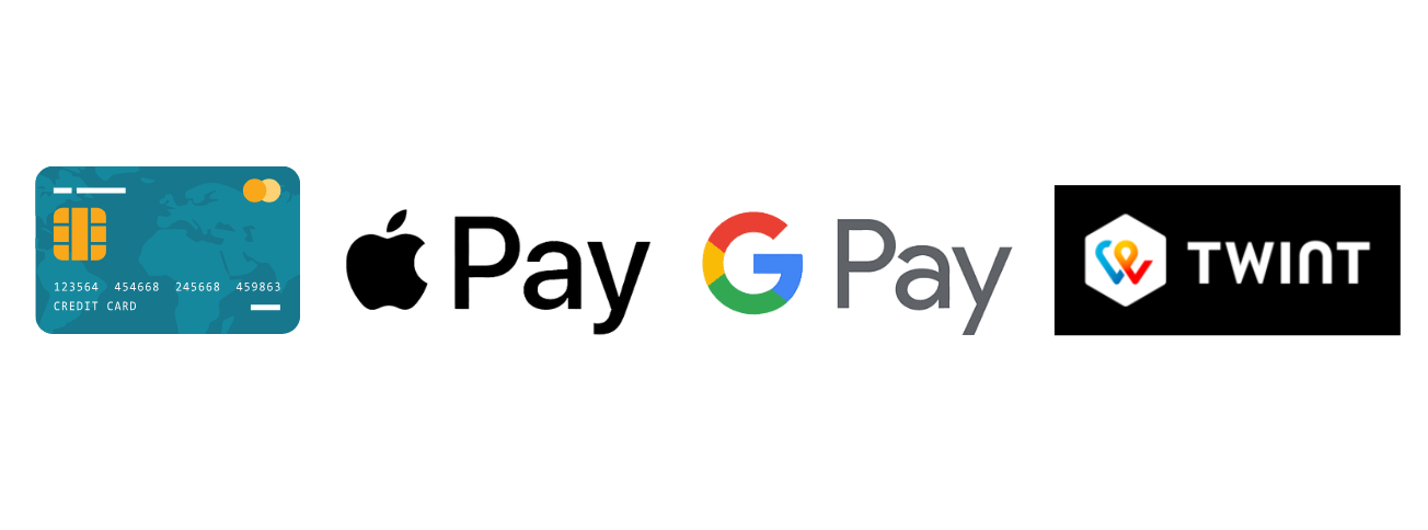 Zahlungsmittel: Kreditkarten, Apple&Google Pay und TWINT